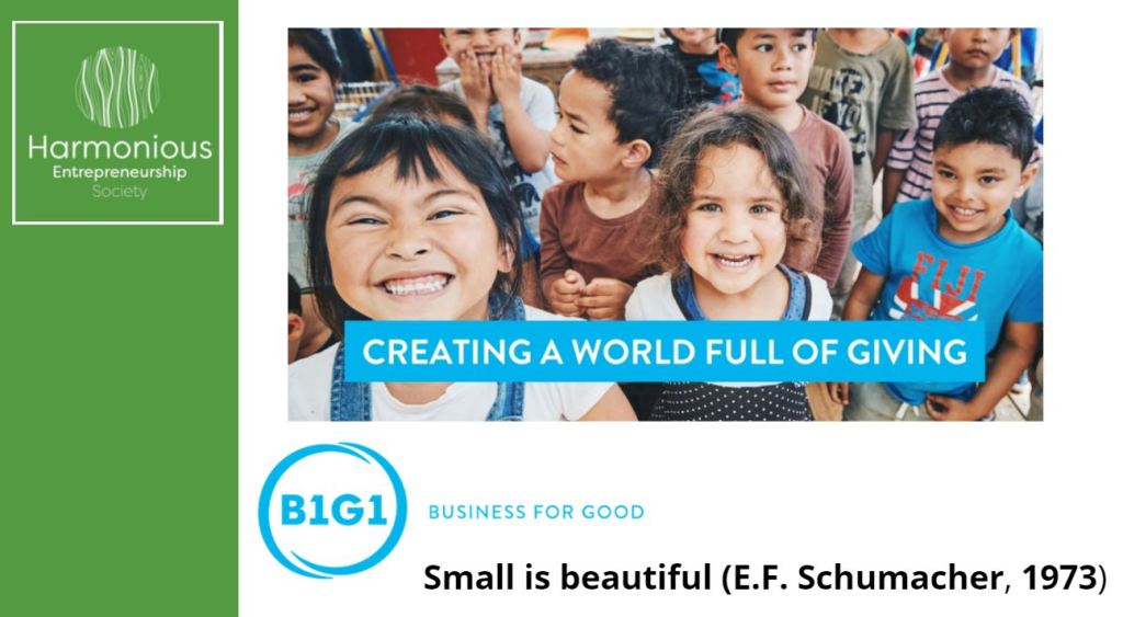 Masami believes passionately in “the power of small” and suggests that “if every business and person can align to create a sustainable world together, then there’s nothing that’s impossible for us to solve”. There are numerous ways in which small and new ventures can contribute by giving (Vincent, 2020), as several of the previously featured Harmonious Entrepreneurship cases have demonstrated – most notably Modest Trends, Toast Ale and Tred. However, all too often entrepreneurs start with good intentions but believe they need to be more successful before they can fulfill their objectives to society, and even in social enterprises the pressures on the founder are often so great that there is “mission drift” (Chell et al (2016). That is assuming the entrepreneur recognizes in the first place that it is his/her responsibility not just to “make as much money as possible” but to conform to the basic rules of society, including “those embodied in ethical custom” (Friedman, 1970). Through giving such barriers can be overcome, as B1G1 has demonstrated, and “the power of small” can bring about large-scale change in both society and the environment. New and small firms can recognise the interconnectivity of the system, address the sustainability challenge, contribute to the UN’s SDGs and respond to the increasing societal recognition of the need for social and environmental awareness and action. By so doing they can not only enhance their revenue streams and profitability but can conform to a Harmonious Entrepreneurship Business Model with a Triple Bottom Line of People-Planet-Profit.