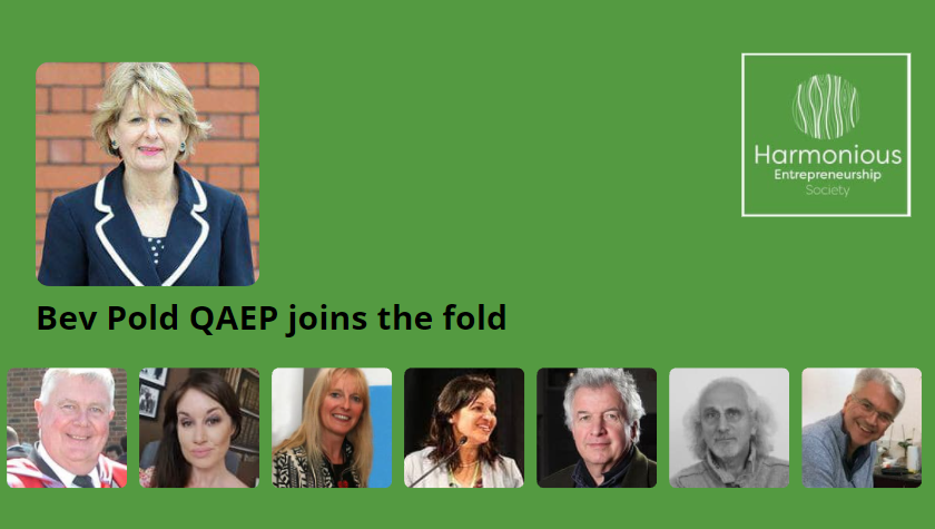 Professor David A. Kirby and I are thrilled to welcome Bev Pold QAEP as Project Advisor to the Harmonious Entrepreneurship Society. A passionate supporter from the outset, Bev makes a fantastic addition to the project advisory team, alongside Associate Professor Kathryn Penaluna, Dr Iman El-Kaffass, Associate Professor Nicholas Campion, Professor David Cadman and Paul Ranson. (https://harmonious-entrepreneurship.org/project-advisors/)