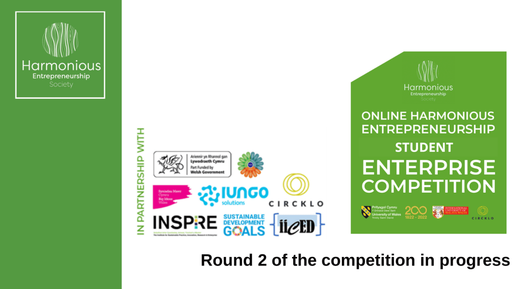 We are pleased to announce that The Harmonious Entrepreneurship Society has now completed the first round of its Online Competition beta testing. Six teams from the University of Wales Trinity Saint David (UWTSD) and the International University of Malaya-Wales (IUMW) have been selected by the international panel of seven judges to proceed to round two, based on their initial written proposals. All participating teams received feedback on their submissions.
