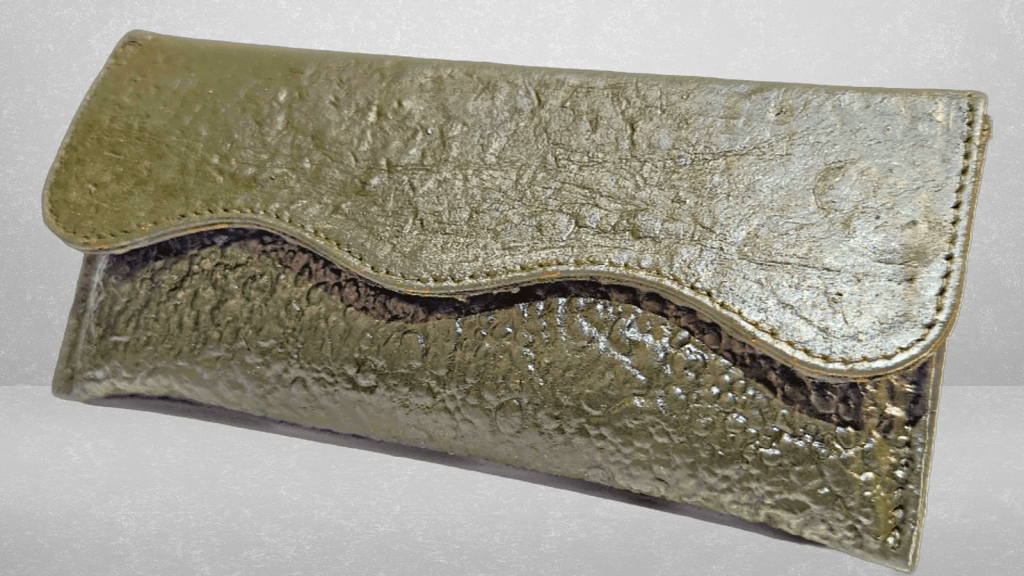 A clutch made of Fleather, a fungi-based alternative to leather that is made by utilising flower waste generated in temples (Credit: Phool)