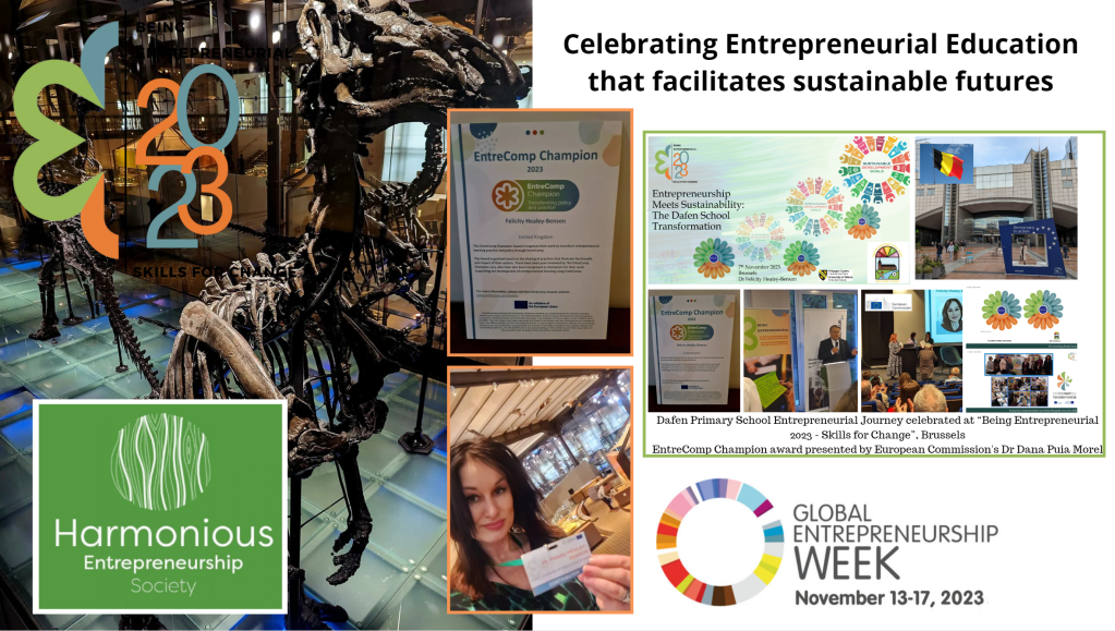 As we delve into the second day of Global Entrepreneurship Week 2023 at Harmonious Entrepreneurship Society, the essence of our mission comes to the fore: instilling entrepreneurial thinking in young minds as a cornerstone for a sustainable and harmonious future. In my role as a facilitator of a transformative journey at Dafen Primary School, South Wales, supported by the invaluable insights and guidance of David, IICED (UWTSD), and the wider EntreComp Community, we’re pioneering a path that intertwines entrepreneurial education with the ethos of sustainability and social responsibility.
