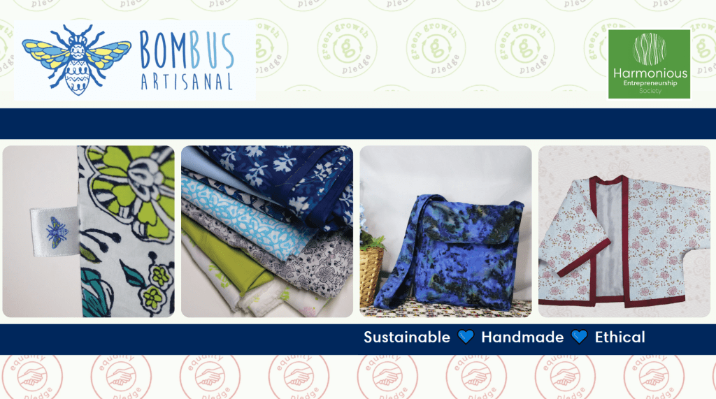 Bombus Artisanal is a Harmonious Enterprise that contributes to SDG 16 by focusing on inclusivity and ensuring her customers feel they belong and are part of a community. It also contributes by addressing SDGs 5 (Gender Inequality) and 10 (Reduced Inequalities), as well as 12 (Responsible Consumption and Production), 13 (Climate Action), and 17 (Partnerships for the Goals). As Amber says, “a big part of Bombus’ production is collaborative projects that highlight the work of other businesses and independent makers. It’s about creating a sense of community and supporting each other”.