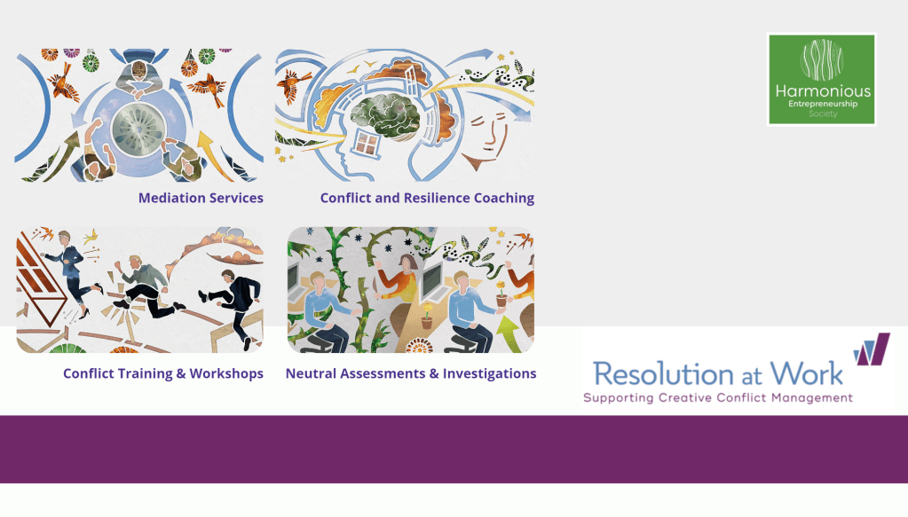 Resolution at Work exemplifies the essence of a Harmonious Enterprise by balancing economic viability with significant societal benefits and the promotion of individual well-being. By focusing on resolving workplace conflicts to enhance mental health and job satisfaction, it goes beyond mere profit generation, and contributes to a more productive and positive society by improving organisational health and reducing conflict-related costs. It demonstrates how a sustainable for profit business model can benefit both the economy and the communities it serves. Through their innovative approach to conflict resolution, including mediation services and conflict management training, they not only ensure their own economic sustainability but also empower their clients to create more harmonious and supportive workplaces.