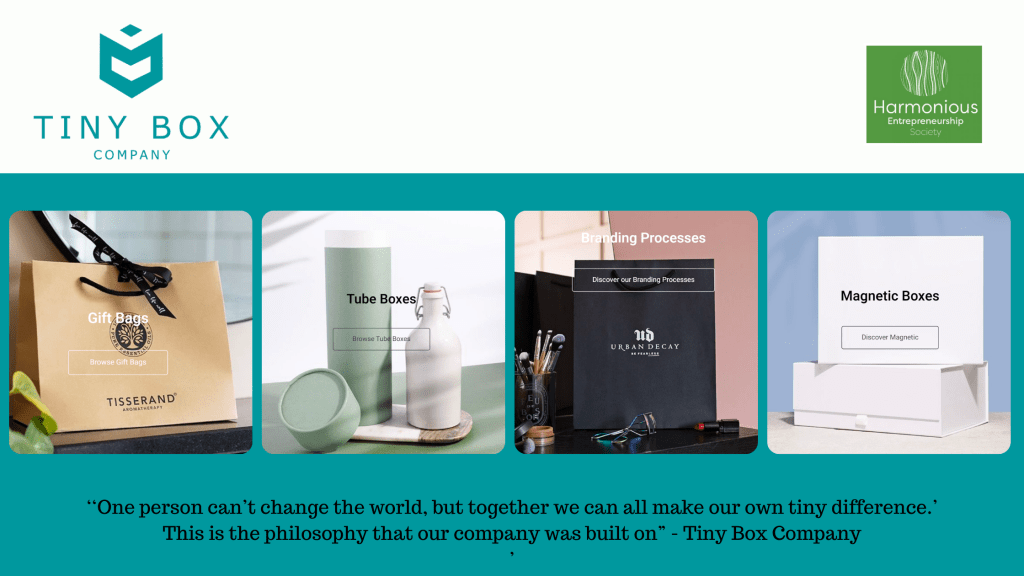 While clearly a commercial operation intended to create jobs and wealth, the Tiny Box Company is equally concerned about people and the planet. It addresses SDGs 8 (Decent Work and Economic Growth), 9 (Industry, Innovation, and Infrastructure), 12 (Responsible Consumption and Production), 13 (Climate Action), 5 (Gender Equality), and 10 (Reduced Inequalities) while recognising, as it does, not just the significance of the founding entrepreneur, but the importance of the entrepreneurial team.
