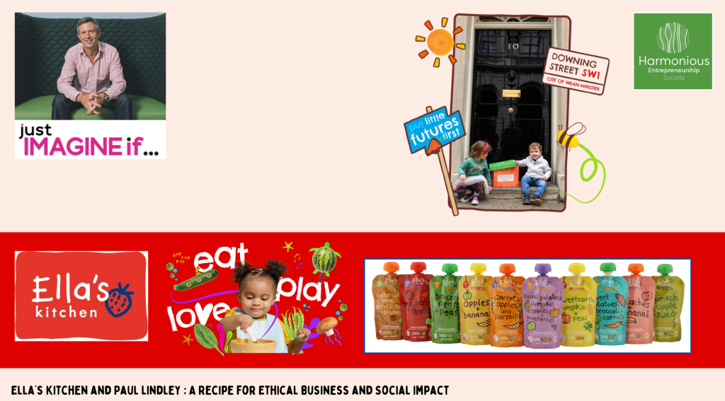 Ella’s Kitchen is a profit making business that addresses the global sustainability challenge. It is an example of a Harmonious Enterprise in which profit, planet and people are in harmony with each other – an example of a world of gender and racial equality, free from businesses polluting our environment and childhood obesity. “It is these dreams”, says Paul, “that led me to establish ‘Just IMAGINE if…’.”